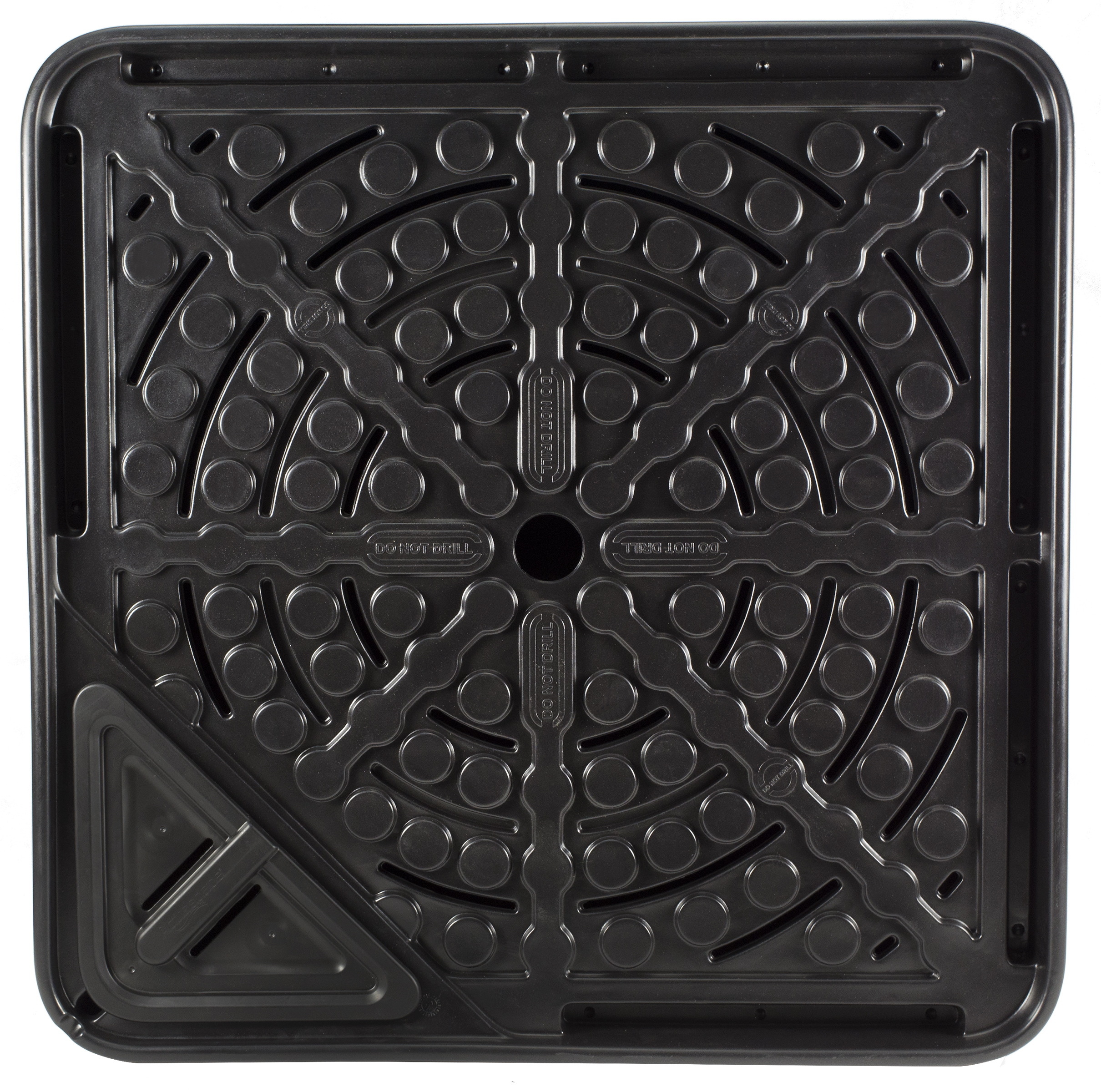 A pump access panel with integrated handle makes it easy to remove the cover for pump access. The large size of the corner access is compatible with larger pumps and is the area is elevated to prevent gravel from falling into the basin during pump maintenance. The square shape reduces water loss due to splash off and maximizes water storage capacity and drainage slots throughout the deck to maximize water circulation. The AquaBasin® 45 can also be used to create a small waterfall (#83013).