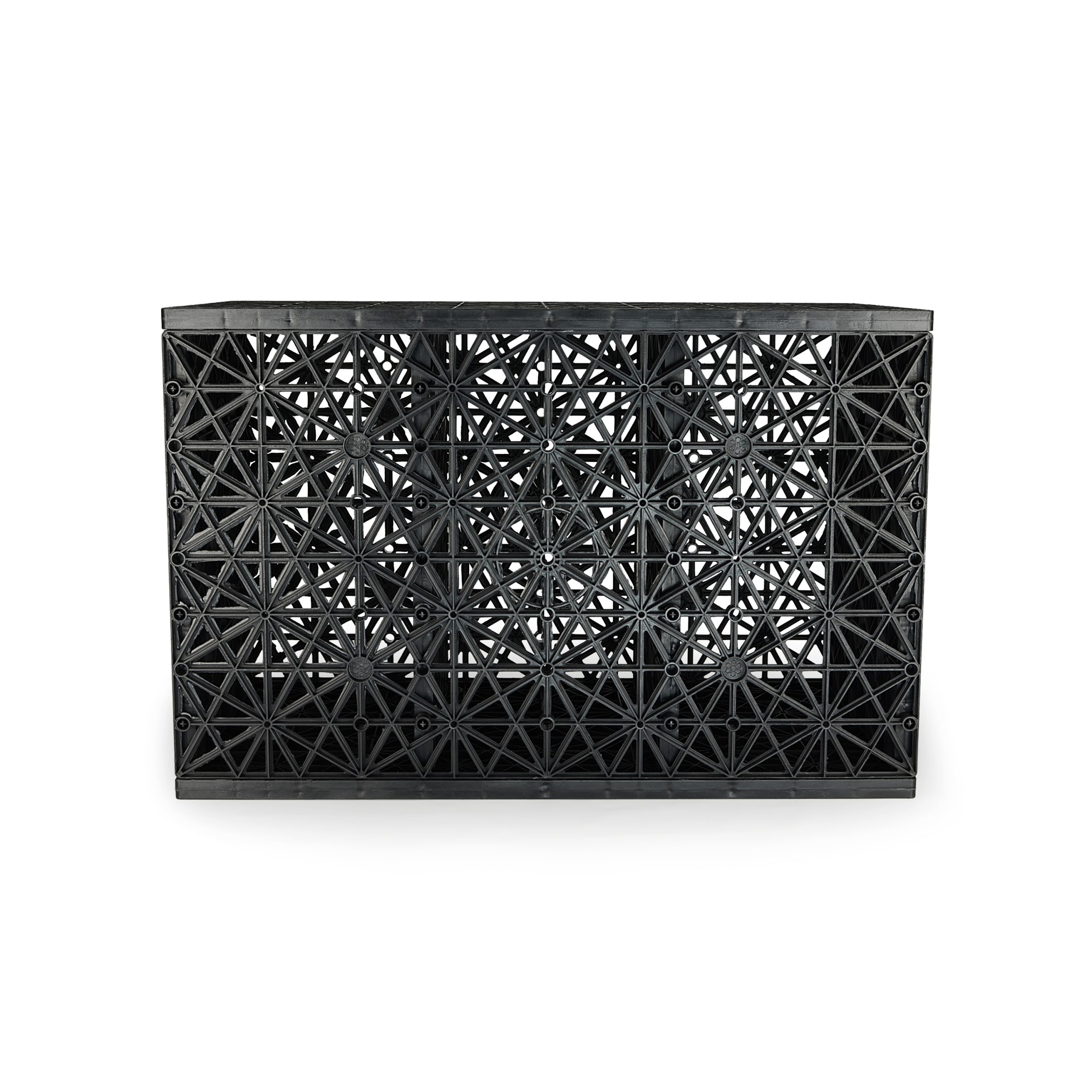 The Aquascape AquaBlox® large water storage module displaces water for use with Pondless® Waterfall reservoirs, rainwater harvesting projects, and other various water feature applications. AquaBlox® are manufactured using recycled materials and designed to efficiently maximize water storage capacity, providing the ability to hold more water with a smaller reservoir footprint. Each large AquaBlox® will hold a total volume of 32 gallons. Holding approximately 7.4 gallons of water per cubic foot, the large AquaBlox® allows more than 3 times the water storage capacity than gravel will provide. This extra storage capacity will mean less time needed to top off the reservoir due to evaporation. Using AquaBlox® will also decrease the amount of labor, liner, and underlayment required during installation. The load-bearing top will support up to 5,472 pounds per square foot, providing years of trouble-free enjoyment and allowing for installation in a wide variety of situations. Aquascape AquaBlox® are easy to clean, less prone to clogging, and come complete with the top, bottom, two sides, and four structural supports.