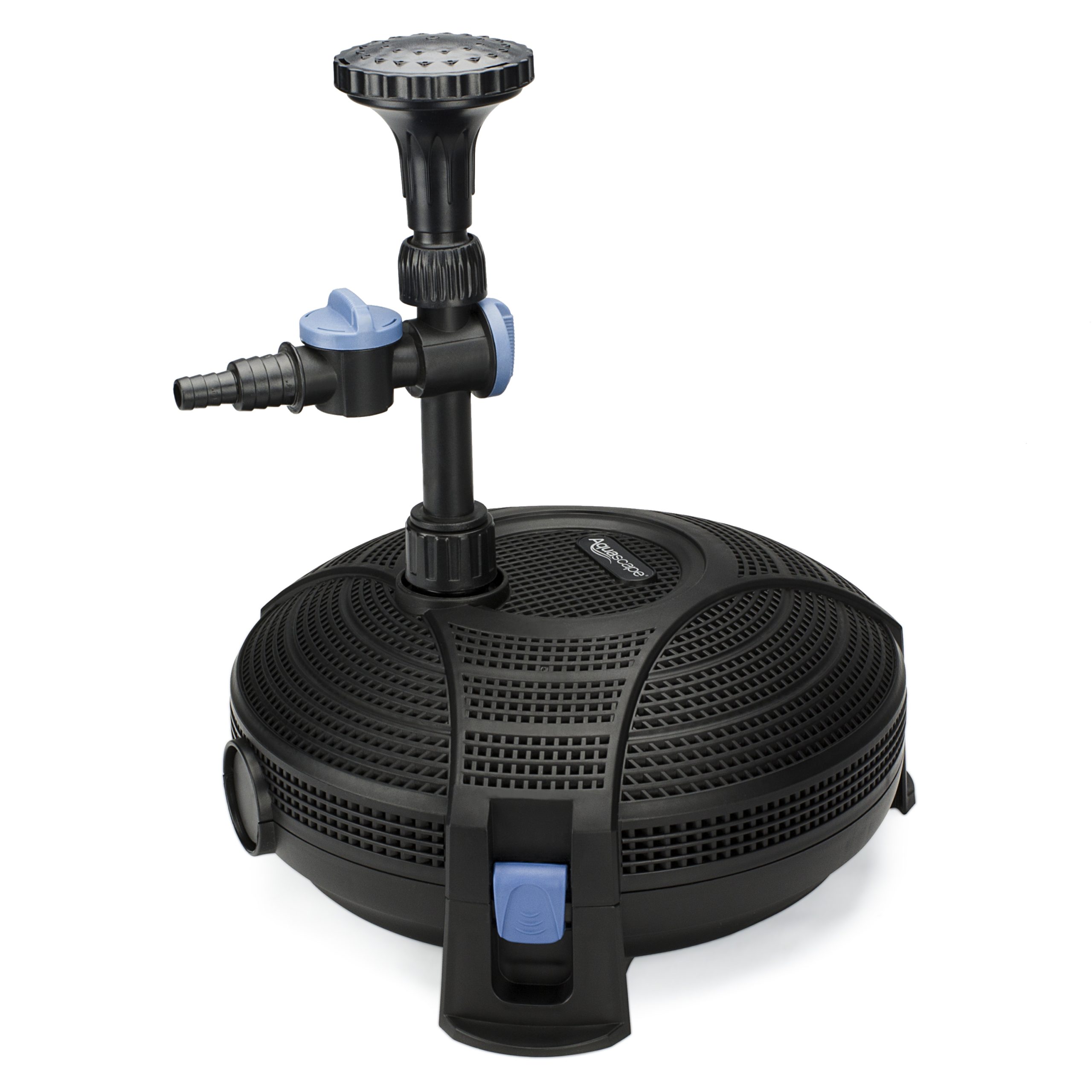 The Aquascape AquaJet® 1300 Pond Pump is the complete solution for ponds up to 1,300 gallons, combining a high-quality, energy-efficient water pump with a stunning fountain head attachment. The protective pump cage prevents debris from clogging or damaging the pump and allows the pump to sit directly in ponds. The AquaJet® 1300 Pond Pump provides flow rates up to 1,350 gallons per hour and the adjustable diverter and flow control valve allow water to be sent to waterfalls, external filters, or spitting ornaments. The adjustable, rotational riser stem makes it simple to adjust the fountain head to varying heights (up to 62″) and positions, and the pump comes complete with three fountain head options: foaming jet, daisy, and waterbell. This pump boasts a fish-safe, oil-free design while the wide, flat base makes the pump stable and easy to place during setup. The Aquascape AquaJet® 1300 Pond Pump also carries a 3-year limited warranty.