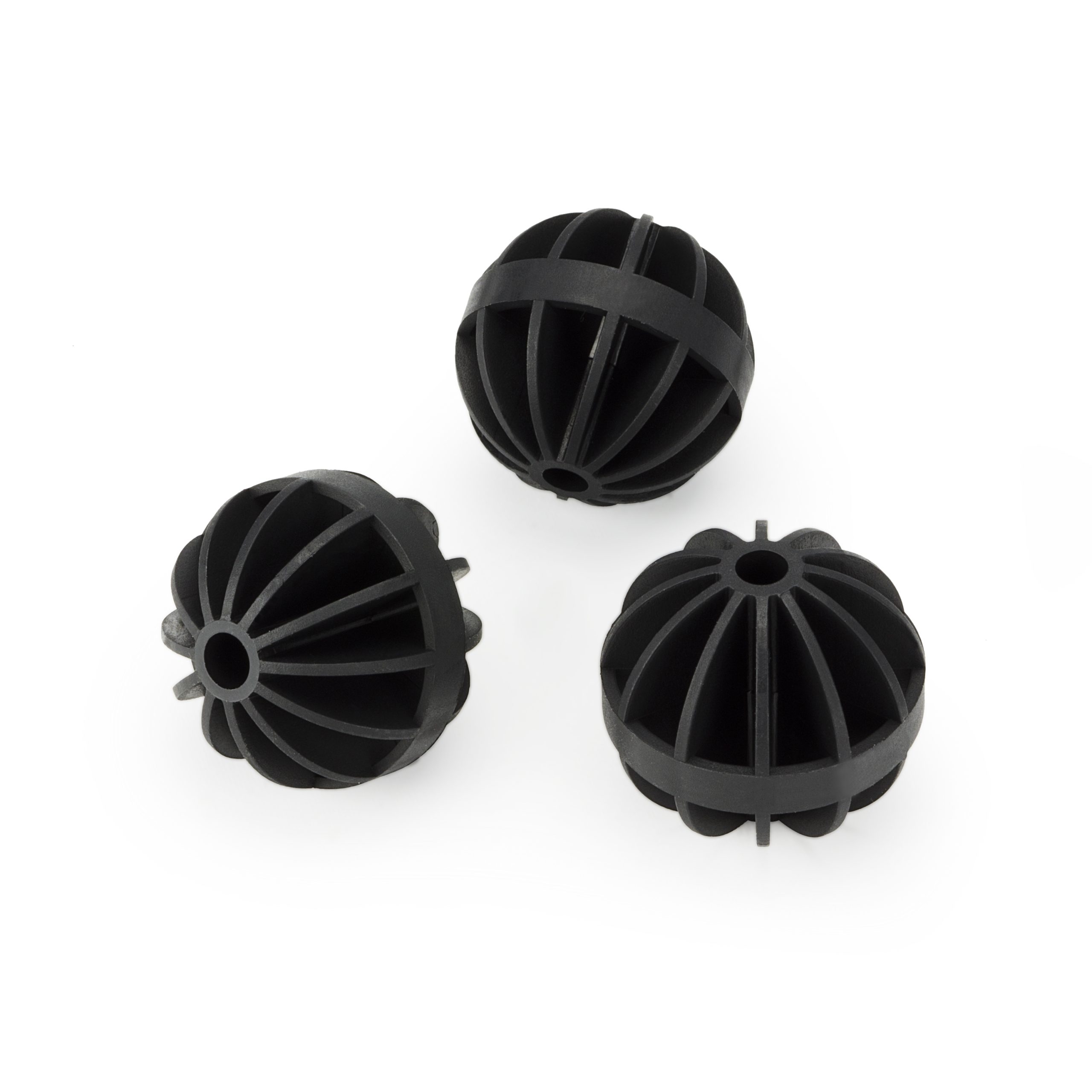 Aquascape BioBalls Biological Filter Media supports effective biological filtration by providing textured surface area for beneficial bacteria to grow and colonize. Each ball offers 19 square inches of surface area, and the center channel allows the balls to be strung together, making cleaning quick and simple. BioBalls Biological Filter Media will not break down like traditional biological media options, providing years of trouble-free use without replacement. The paddle wheel design breaks water flow, helping to de-gas the water and maximize dissolved oxygen levels. Compact size allows for placement into smaller spaces and each 100 count includes a media net with drawstring.