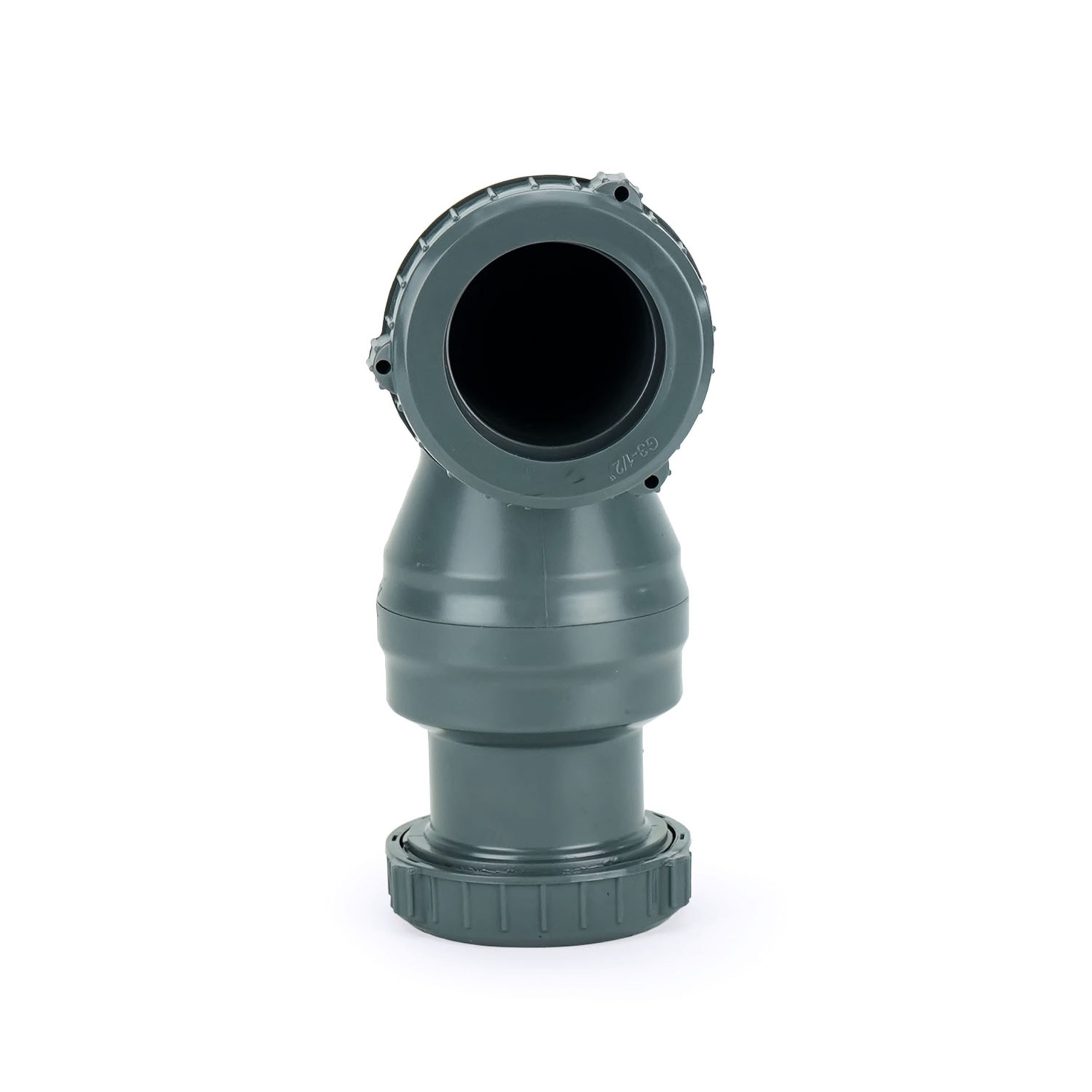 The Aquascape Dual Union Check Valve 2.0 effectively prevents backflow in ponds and water features while providing a professional pump and plumbing connection inside pond skimmers and Pondless® Waterfall Vaults. The heavy-duty, swing-style check valve flapper is built to last and maximizes water flow through the valve when open while preventing the backflow of water when the pump is shut off or during a power outage. A set of innovative reversible fittings takes the guesswork out of finding the right pump or filter fitting; simply rotate the fitting to the desired orientation for your application. Union connections on both sides of the valve make pump and filter maintenance quick and easy without the use of tools. The Dual Union Check Valve 2.0 is compatible with a wide variety of filter sizes, making it easy to extend the valve height when needed.