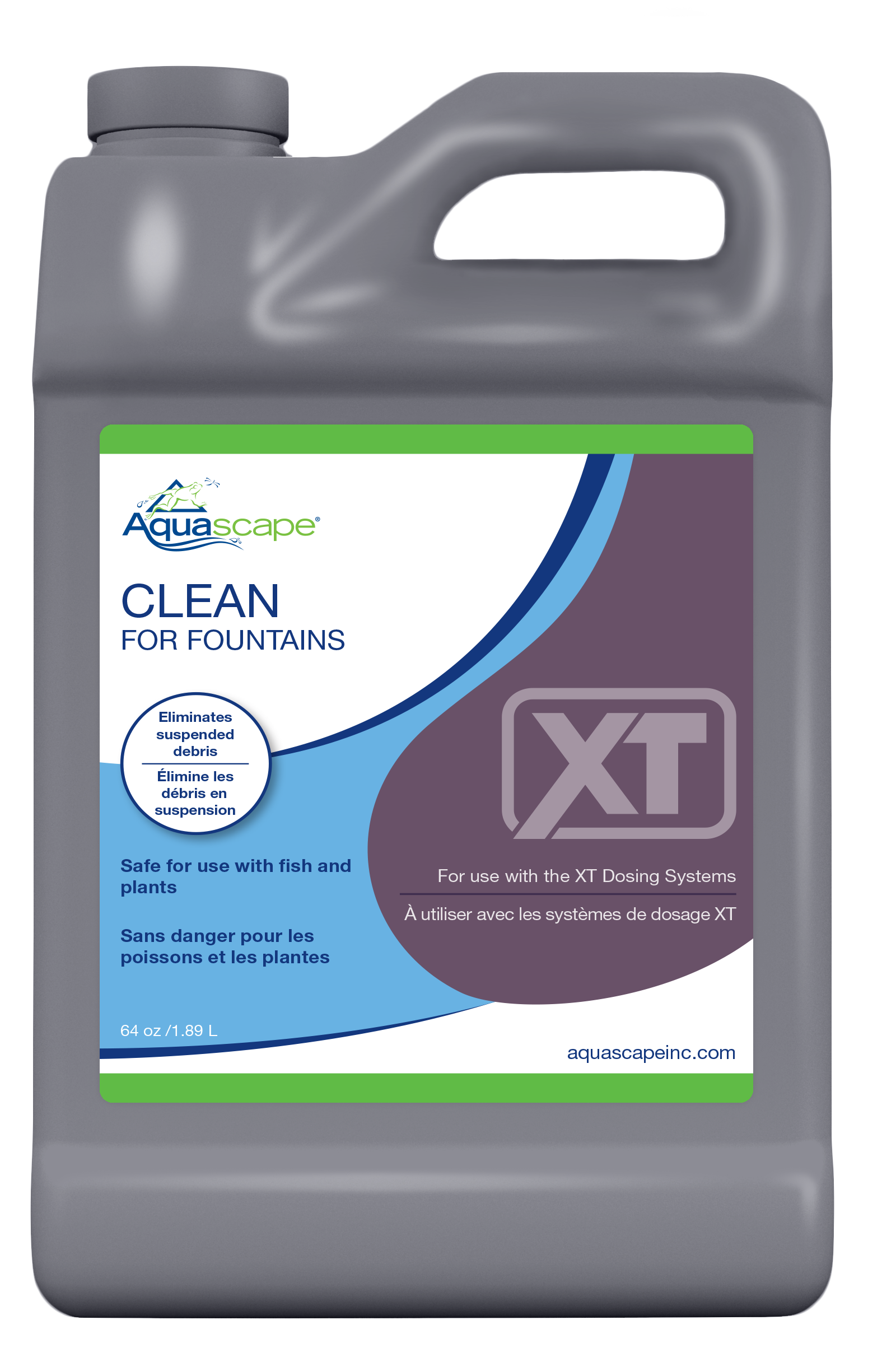 Aquascape Clean for Fountains XT effectively cleans and clarifies fountains and fountain water to keep water features clean and clear while significantly reducing maintenance and issues with water quality. Clean for Fountains XT is available in half gallon and gallon options and designed only for use with the Smart Pond Dosing System XT. This special formulation is ideal for water features with standing water, including commercial fountains and other features containing fish or plants. This easy-to-use water treatment contains a fast-acting flocculant and phosphate binder to help clump and clear suspended debris. Clean for Fountains XT also safely prevents and eliminates foam. Clean for Fountains XT is safe for fish, plants, pets, and wildlife.
