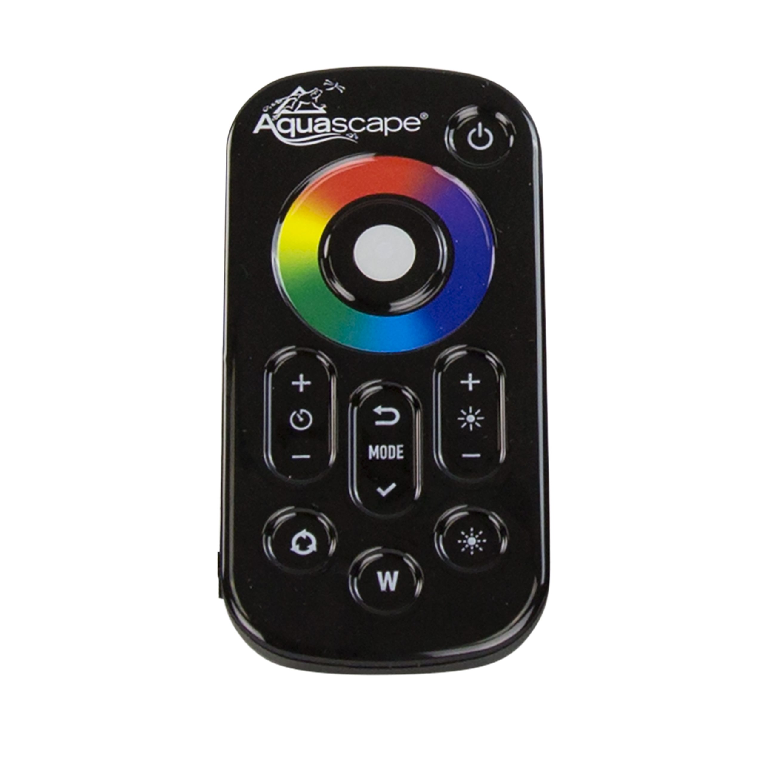 The Aquascape Color-Changing Light Remote allows for wireless RF remote control of Aquascape color-changing lights without the use of a smart phone or tablet. This optional remote provides simple lighting controls including, on/off, color selection, dimming, and more.