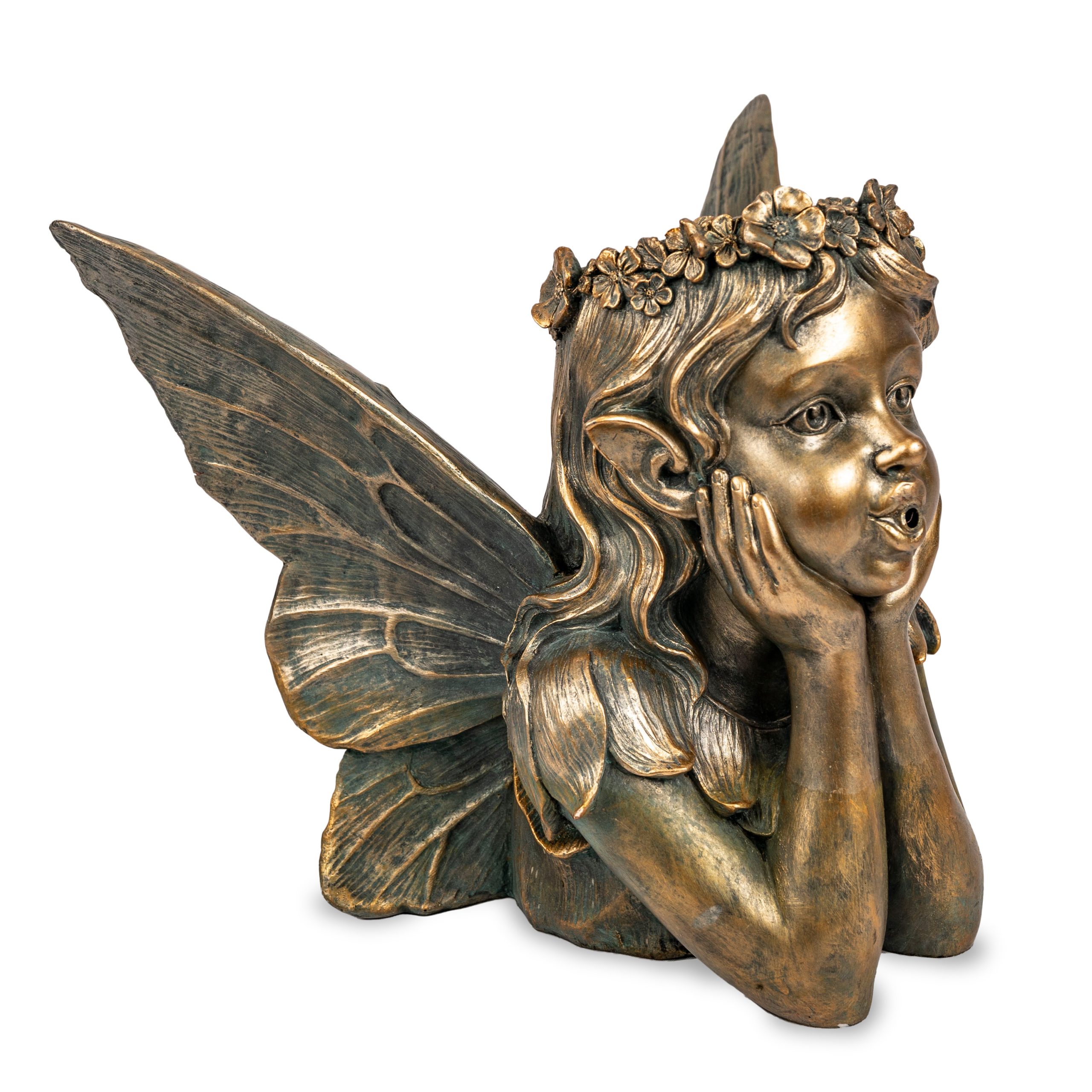 Enhance your pond or water feature with the Aquascape Fairy Planter Spitter. Made from high-quality polystone material, this accent piece is lightweight, easy to install, and resistant to UV and heat exposure. The whimsical fairy provides visual interest and relaxing sounds as the water flows from her mouth. Make your spitter unique by adding your choice of planting to the 3″/7.62 cm planter head. A realistic faux patinaed brass finish and ideal size makes this feature great for any location, including streams, ponds, wetlands, and even patio ponds. The fountain measures 12″ long and 9.75″ high.