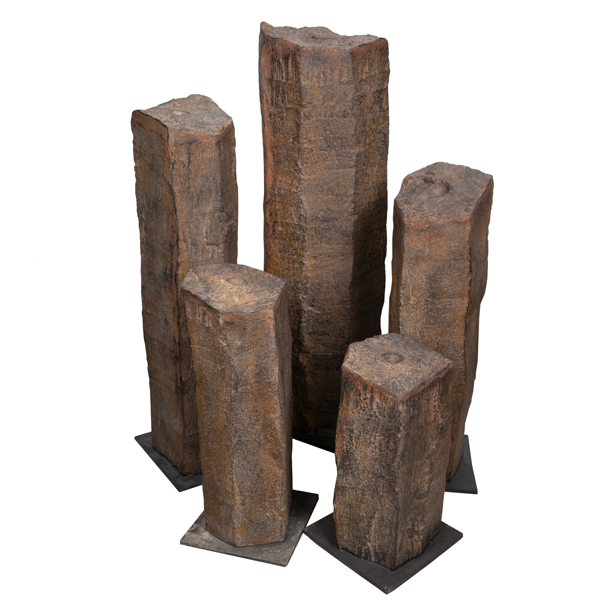 Aquascape Faux Basalt Columns make it easier than ever to create an impressive, recirculating, 5-piece fountain. Five columns are included, measuring 18 inches, 24 inches, 30 inches, 36 inches and 42 inches in height. Each column is molded from real basalts and handmade in the USA using fiberglass, resin, and real stone to provide an extremely realistic and durable fountain. Real basalt is extremely heavy and can be difficult to install. Due to the lightweight nature of the faux basalts, installation is quick and easy. Each column provides a convenient base, making it easy to secure in place using decorative gravel. The included tubing and plumbing fitting install easily into the recessed area at the top of the fountain. If desired add a color-changing or warm white Fountain Light to illuminate the water (#84072, #84008 sold separately). The set of 5 columns is great for use with large custom fountain reservoirs.