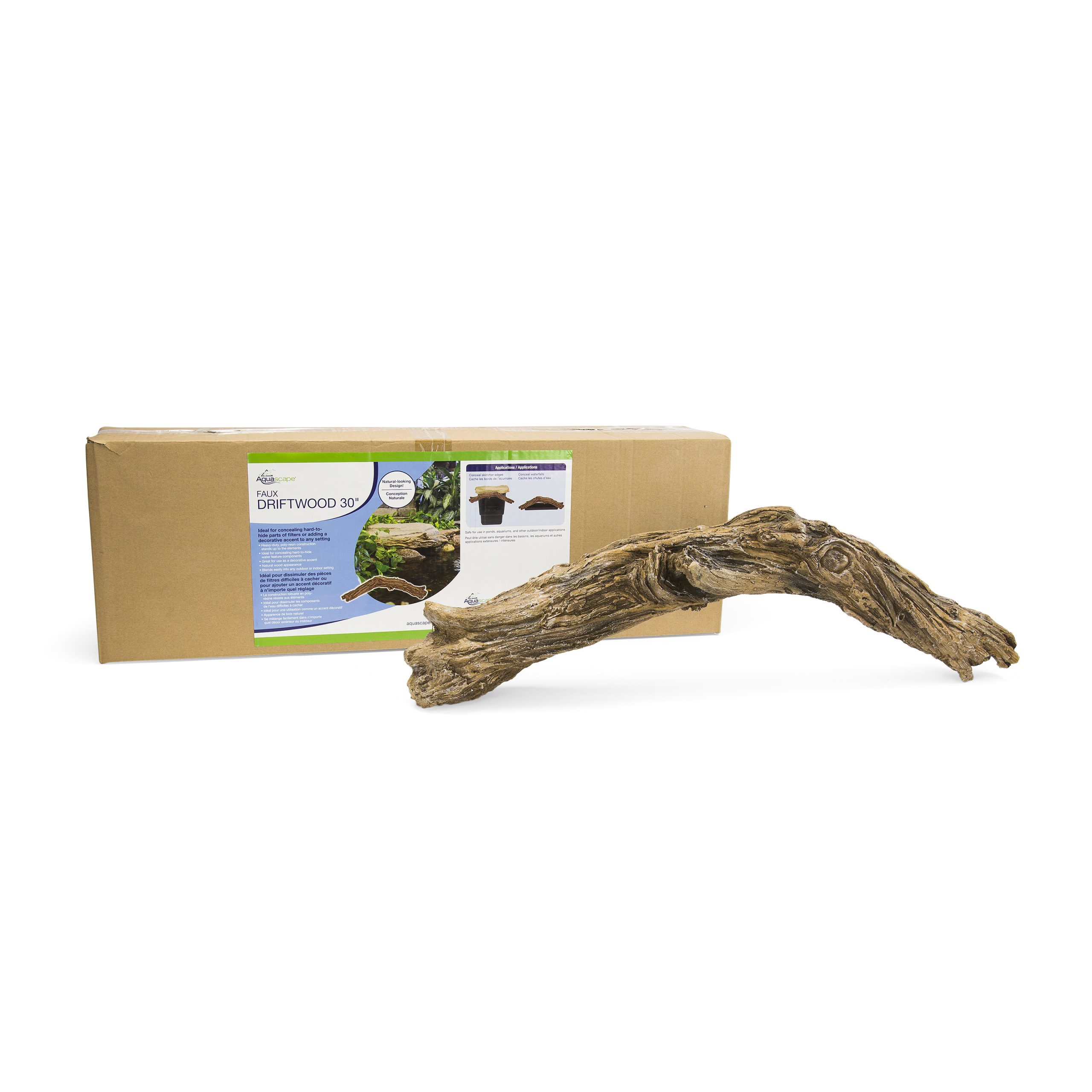 The Aquascape Faux Driftwood 30” is ideal for concealing hard-to-hide water feature components or adding a realistic decorative accent to any location. Aquascape Faux Driftwood 30″was designed to effectively hide filter components such as difficult-to-conceal edges of skimmers and waterfall filters. The heavy-duty polyresin construction is built to last and stand up to the elements, and the natural wood appearance is extremely realistic and blends easily into any indoor or outdoor setting.