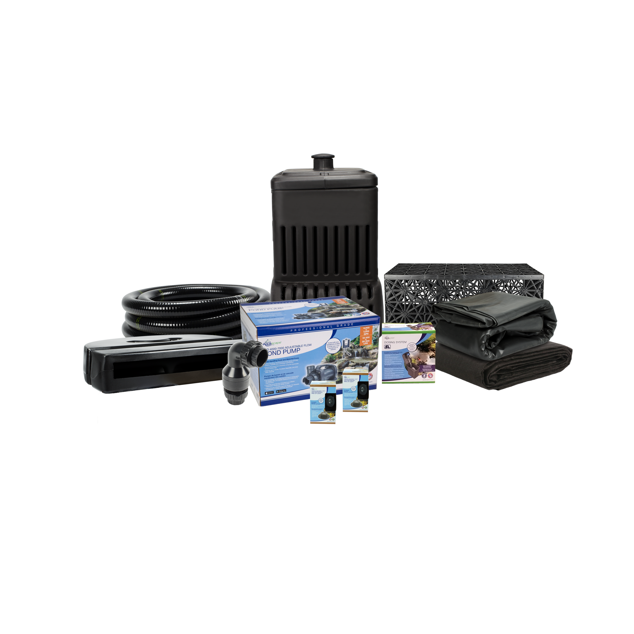• Includes: Waterfall Spillway 22”, Pondless® Waterfall Vault, (5) AquaBlox® Small Water Storage Modules, SLD 4000-7000 Solids-Handling Pond Pump with check valve assembly, (2) 1-Watt Waterfall Lights, 60-Watt Lighting Transformer with Photocell, 3-Way Quick-Connect Splitter, 25’ Quick-Connect Extension Cable, Dosing System SL with starter water treatment, Flexible PVC Pipe – 2” x 25’, 45 Mil EPDM Liner – 10’ x 20’ (stream) and 10’x 12’ (reservoir) with 120 sq. ft. of protective underlayment, and Installation Kit containing silicone, Pond and Waterfall Foam Sealant, PVC cement, and more