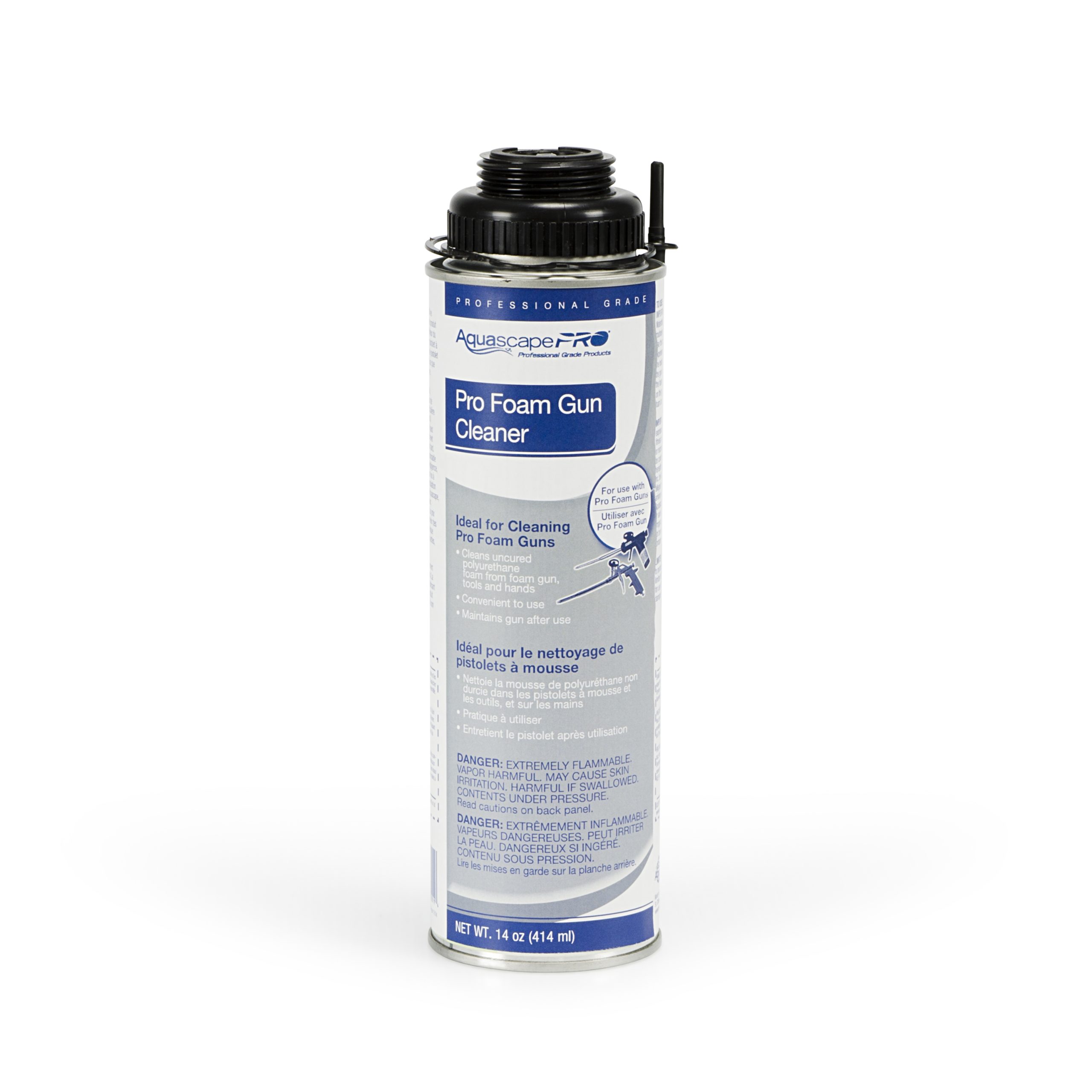 The Aquascape Professional Foam Gun Cleaner makes working with waterfall foam easier than ever. If not properly cleaned, foam applicator guns can become clogged, making them difficult to use. This handy cleaner will work to flush the foam gun clean of any existing foam or debris, allowing the gun to work like new again. Professional Foam Gun Cleaner will also remove uncured foam from an undesired location when necessary.